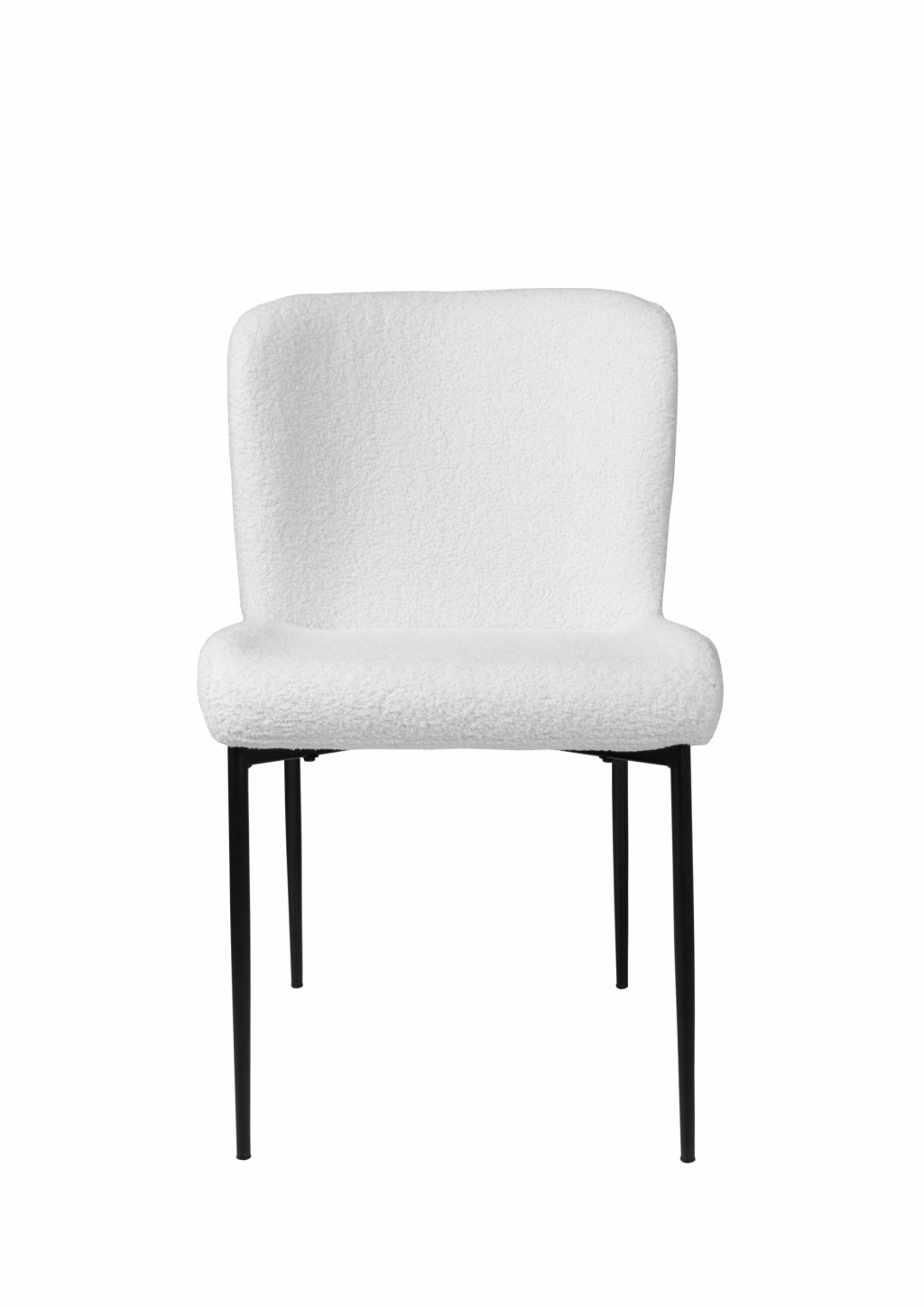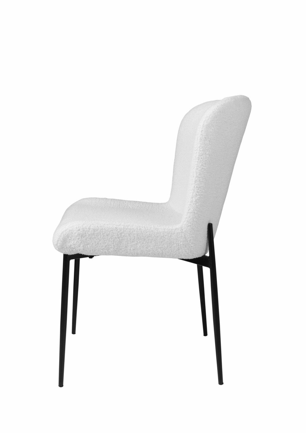 A Blanka szék fehér színben a letisztultság és modern elegancia találkozása. Különleges megjelenését a buklé szövet kárpitozás adja, amely nemcsak puha és kellemes tapintású, hanem kifejezetten tartós és könnyen tisztítható is. Ez az anyag texturált felületével elegáns hatást kelt, miközben melegséget visz bármilyen térbe.