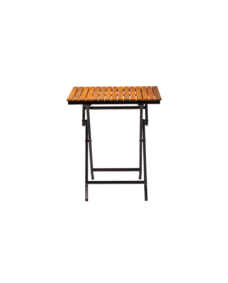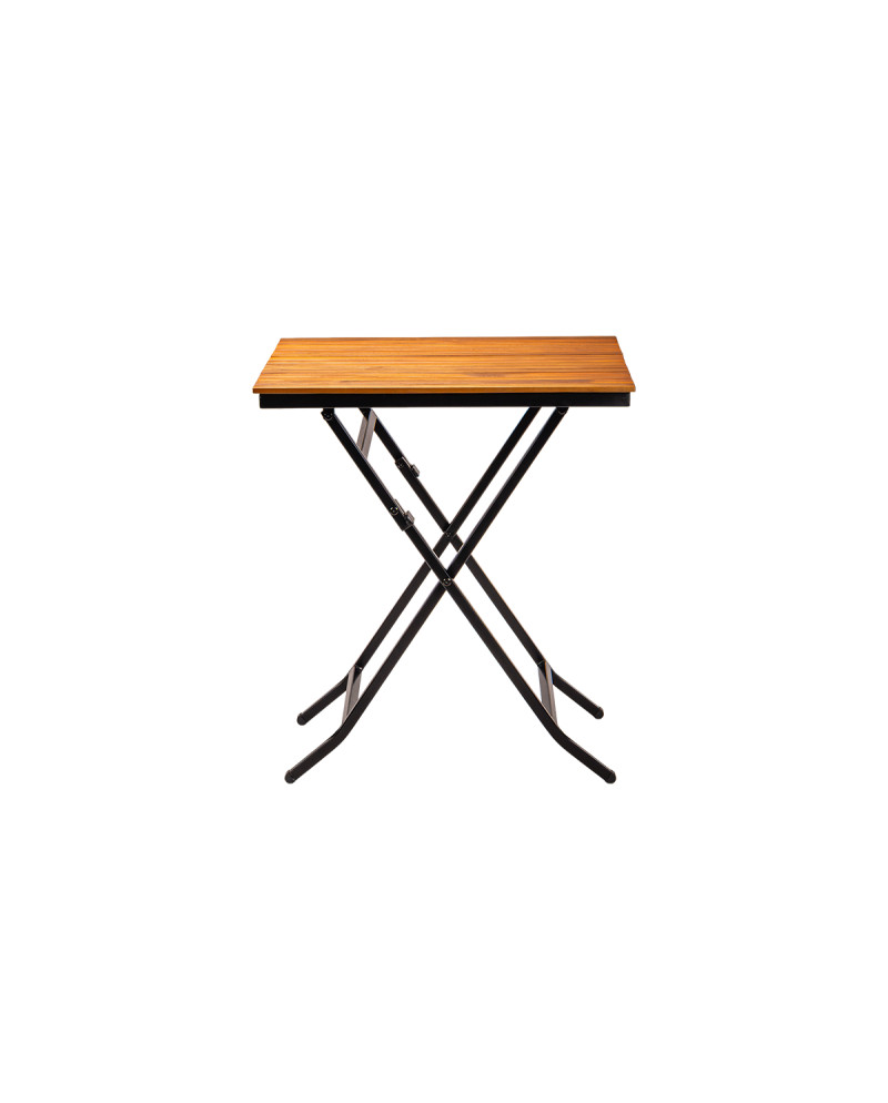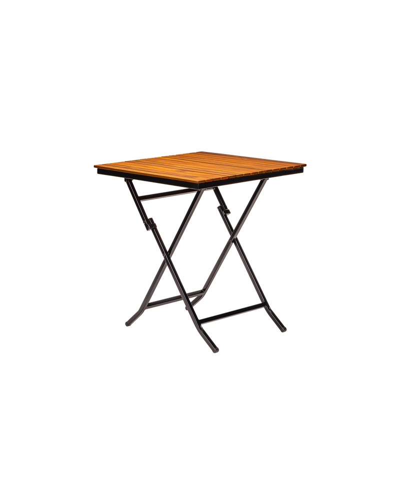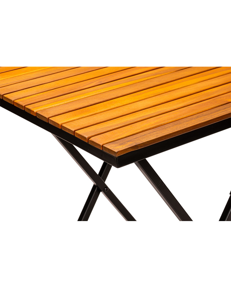 Az asztallap minőségi akácfából készült, amely természetes, meleg hangulatot teremt, és jól illeszkedik kültéri zöld környezethez vagy rusztikus enteriőrökhöz. Emellett a felület könnyen tisztítható, ami különösen fontos a nagy forgalmú vendéglátóhelyeken.