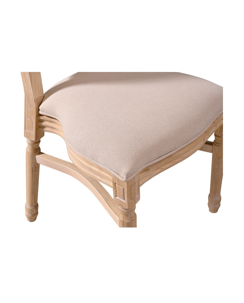 A szék kialakításának egyik legmeghatározóbb eleme a klasszikus, ovális háttámla, amely finom ívével elegáns megjelenést biztosít. A gondosan megmunkált, faragott részletek és a kecsesen formázott lábak különleges karaktert adnak a bútornak, így az nemcsak funkcionális, hanem dekorációs elemként is megállja a helyét.