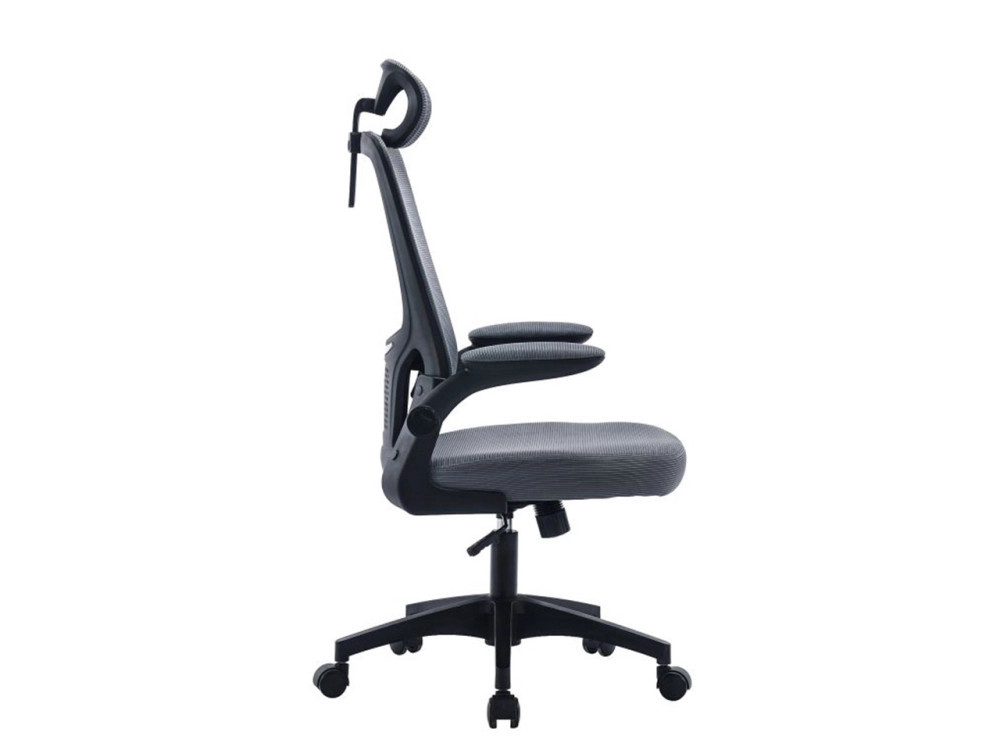 Az állítható deréktámasz a hálós háttámla mögött lehetővé teszi a szék személyre szabását és a testtartás optimális támogatását. A karfák kárpitozott támfelülettel rendelkeznek, amelyek felhajthatók, így könnyedén beállítható a megfelelő kar- és válltámasz.