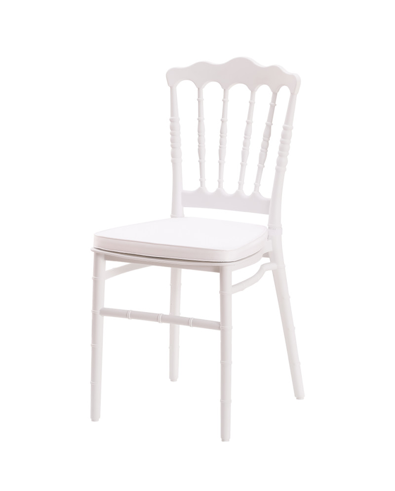 A Napoleon Simple esküvői szék a praktikum és az elegancia harmonikus kombinációja, amely tökéletes megoldást kínál azok számára, akik stílusos, mégis költséghatékony bútorokat keresnek rendezvényeikhez. Klasszikus Chiavari/Napoleon formavilága időtálló megjelenést biztosít, amely kiválóan illeszkedik esküvői helyszínekhez, bankettekhez és egyéb elegáns eseményekhez.