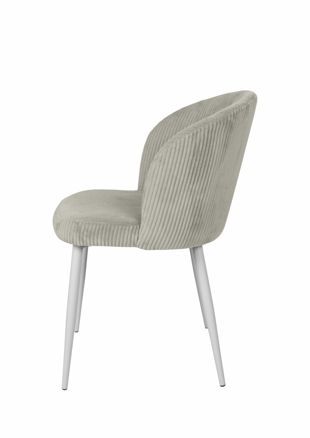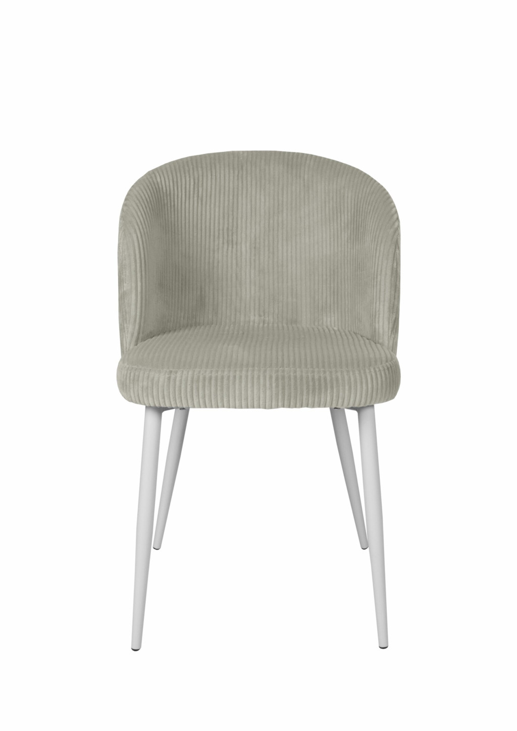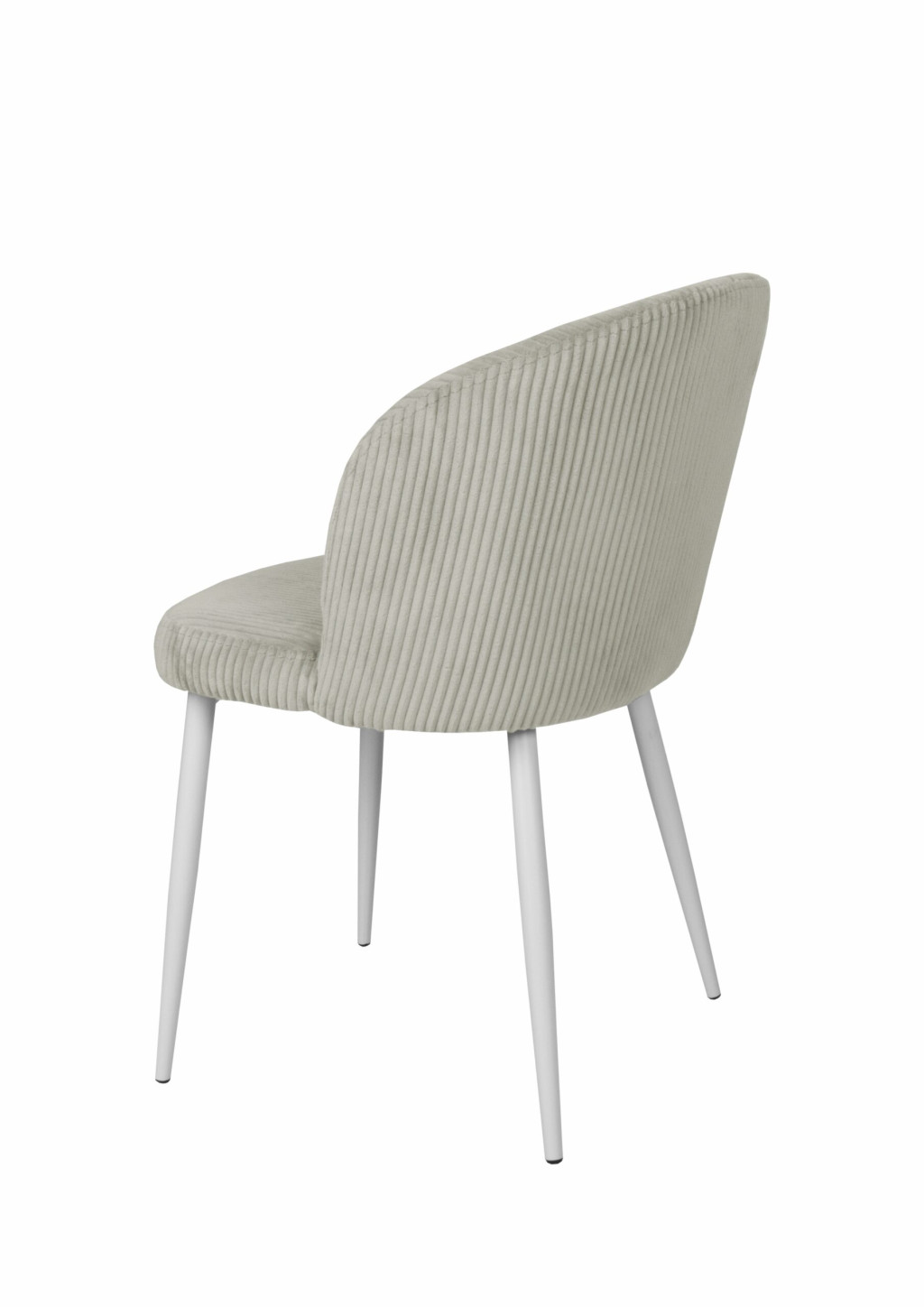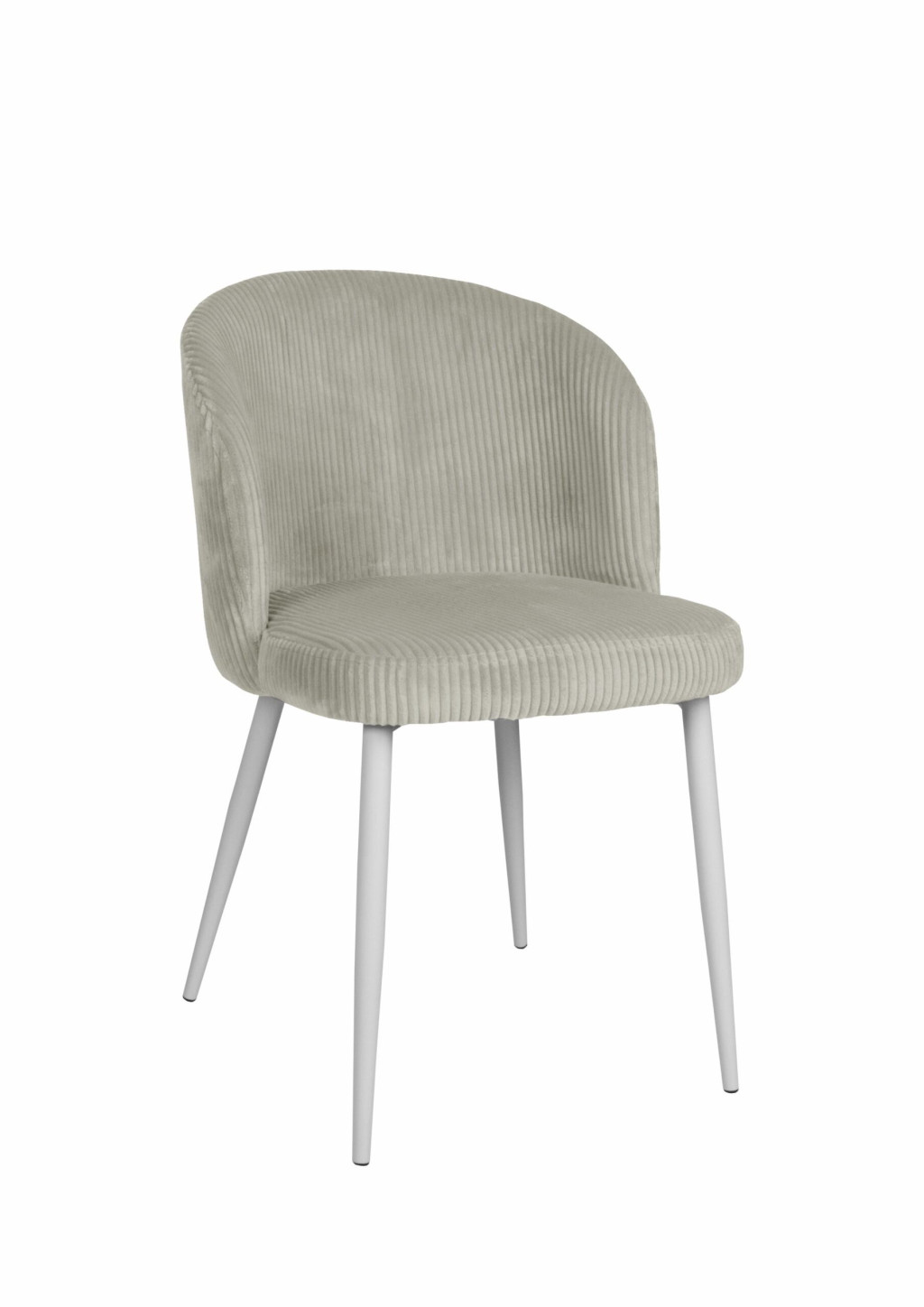 A fehér festett fém lábak stabil szerkezetet biztosítanak, miközben modern, letisztult megjelenést kölcsönöznek a széknek. Az ergonomikus kialakítás biztosítja a kényelmes ülést, akár hosszabb időn keresztül is, így a szék ideális választás étkezőasztalokhoz, irodákhoz vagy tárgyalókhoz.