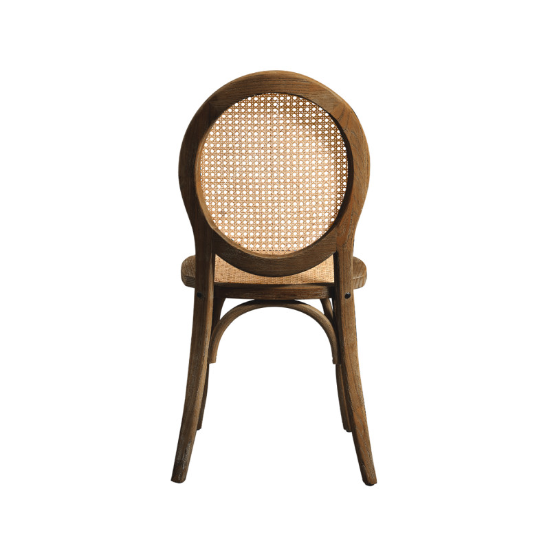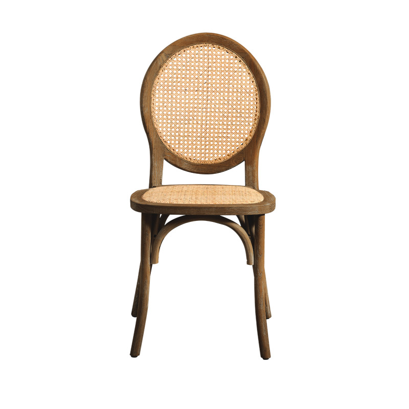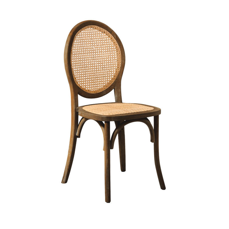 A Palace fa esküvői szék sötét rusztikus színben a klasszikus elegancia és a modern funkcionalitás tökéletes kombinációja. Tömörfa szerkezete stabilitást és hosszú távú tartósságot biztosít, így a szék évek múltán is megbízhatóan használható. Az ülőfelület natúr rattanból készült, amely kényelmes ülést nyújt a vendégeknek, miközben esztétikus, elegáns megjelenést biztosít a rendezvényhelyszín számára.