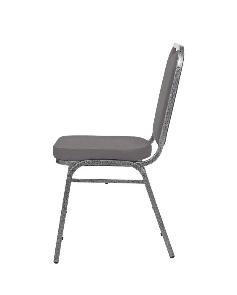 A szék szürke színű, ellenálló kárpitozással rendelkezik, amely visszafogott, mégis elegáns megjelenést kölcsönöz. Az ülőfelület megereszkedésmentes habszivacsból készült, 4 cm vastagságban, így hosszabb konferenciák, ünnepségek vagy bankettek során is megfelelő komfortot biztosít. A kárpit esztétikus, könnyen kezelhető, és minimális karbantartást igényel, ami különösen fontos intenzív használat esetén.