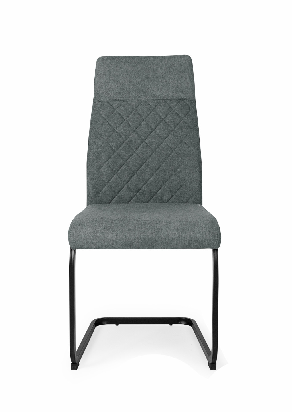 A szövetkárpitozás puha, tapintásra kellemes anyagból készült, amely strapabíró és könnyen tisztítható. Ezáltal a Teo szék hosszú távon is megőrzi kifinomult megjelenését. A fekete porfestett fém lábak erős, stabil alapot biztosítanak, és esztétikailag is jól harmonizálnak a sötétszürke kárpittal.