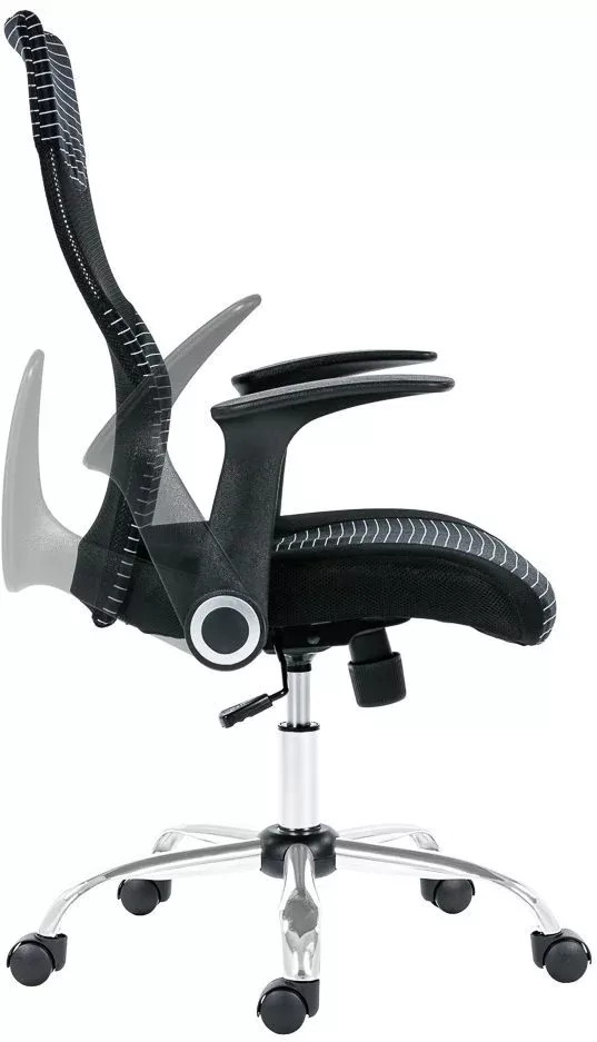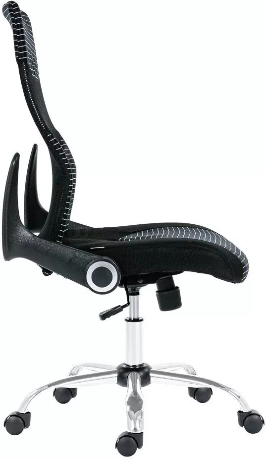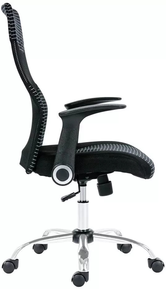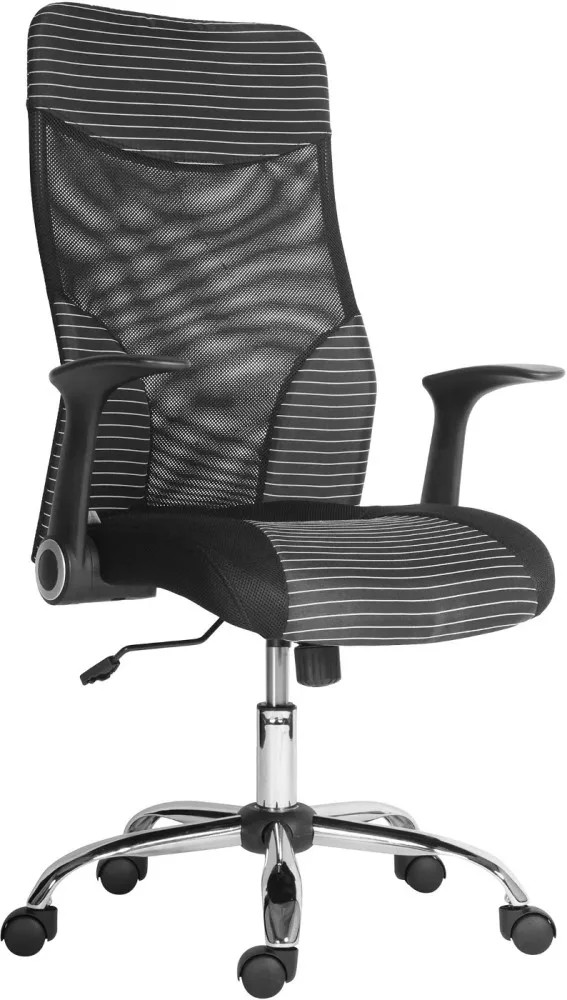 A középmagas hálós háttámla és a fekete mesh ülőlap fehér csíkos díszítéssel egyesítve modern és légáteresztő megjelenést kölcsönöznek a széknek. Ez nem csak esztétikailag vonzó, hanem a hosszabb ülések során is kényelmet és hűvösebb érzést biztosít.